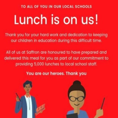 “We are absolutely thrilled to have received the delivery of 100 curry dinners from The Saffron Restaurant, in Northampton, which made this incredible gesture in recognition of the hard work of teachers and support staff during the pandemic. This is truly appreciated.